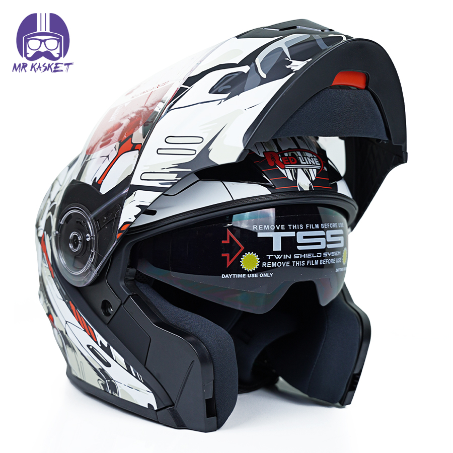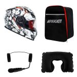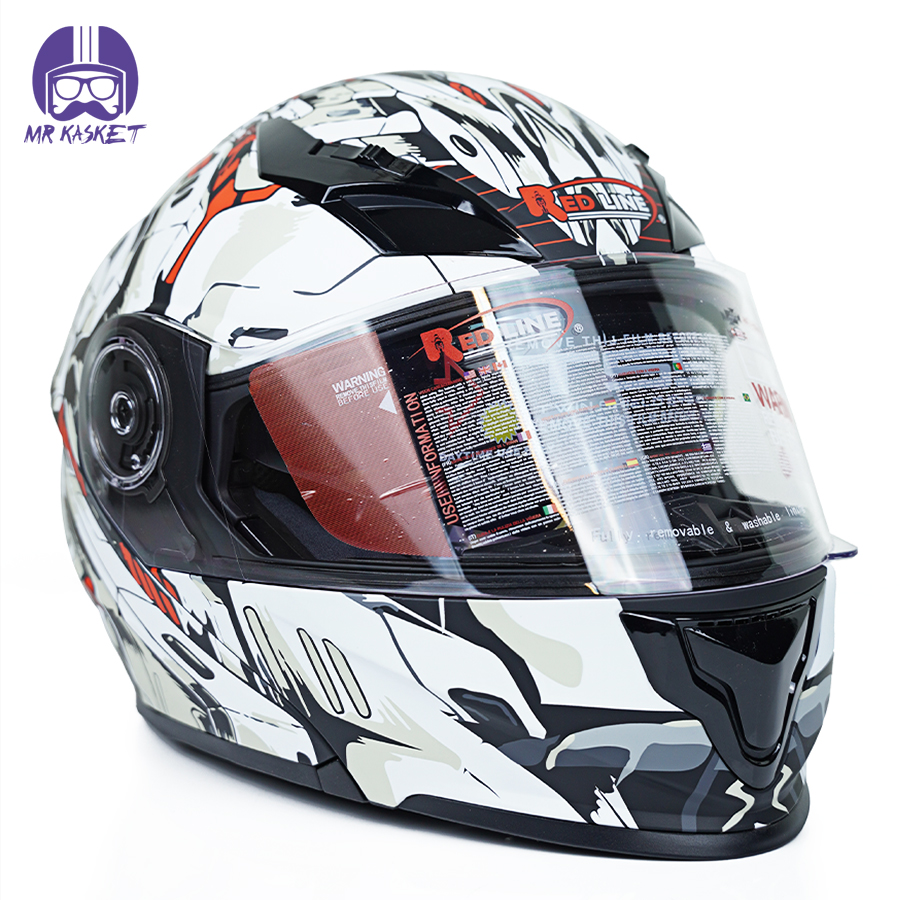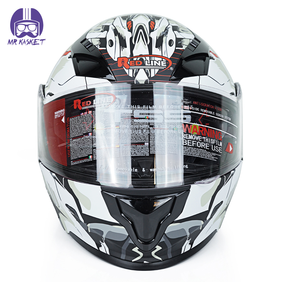 کلاه کاسکت ردلاین مدل ۹۳۹ طرح Red Luse به همراه هندزفری بلوتوثی و کیف حمل و پد گردن مجموعه ۴ عددی